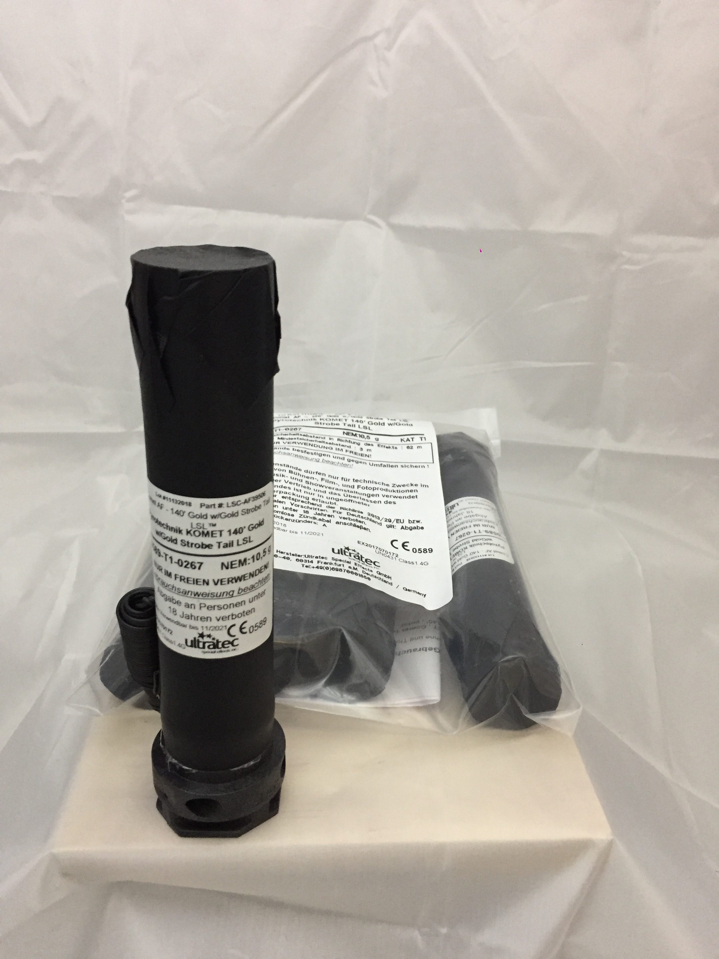AF DMD Systems Komet 140′ gold mit Goldstrobeschweif, raucharmer Abschuss LSL), kräftiger Komet mit extrem raucharmen Abschuss, ideal bei Witterungsbedingungen mit schlechtem Rauchabzug