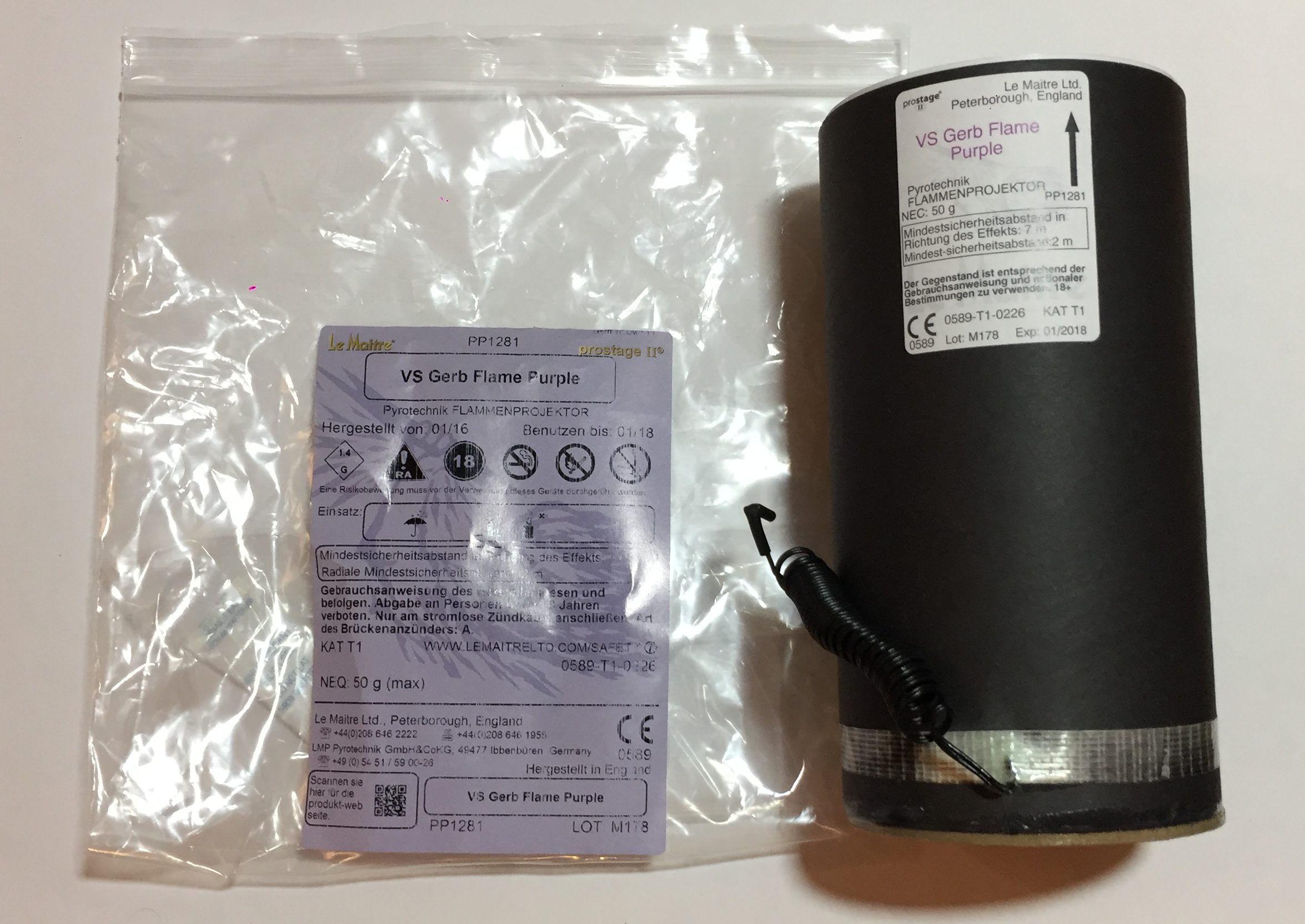 LE MAITRE Gerb Flame, Flammensäule mit Silberfunken, hier mit violetter Flamme, 6 verschiedene Farben erhältlich